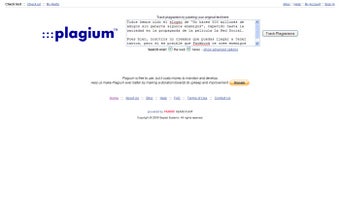 Plagium no consiste más que en una caja de búsqueda en la que introduces tu texto y un botón llamado Track Plagiarisms. Al pulsarlo, el motor buscará textos sospechosamente similares y te los mostrará cronológicamente.