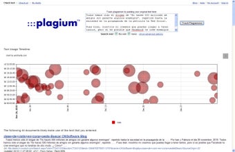 Puede parecer que Plagium hace lo mismo que cualquier buscador, pero también ubica todos los presuntos plagios en un gráfico temporal, de modo que sepas en qué periodos ha tenido más éxito tu escrito, traducido en número de reproducciones.
